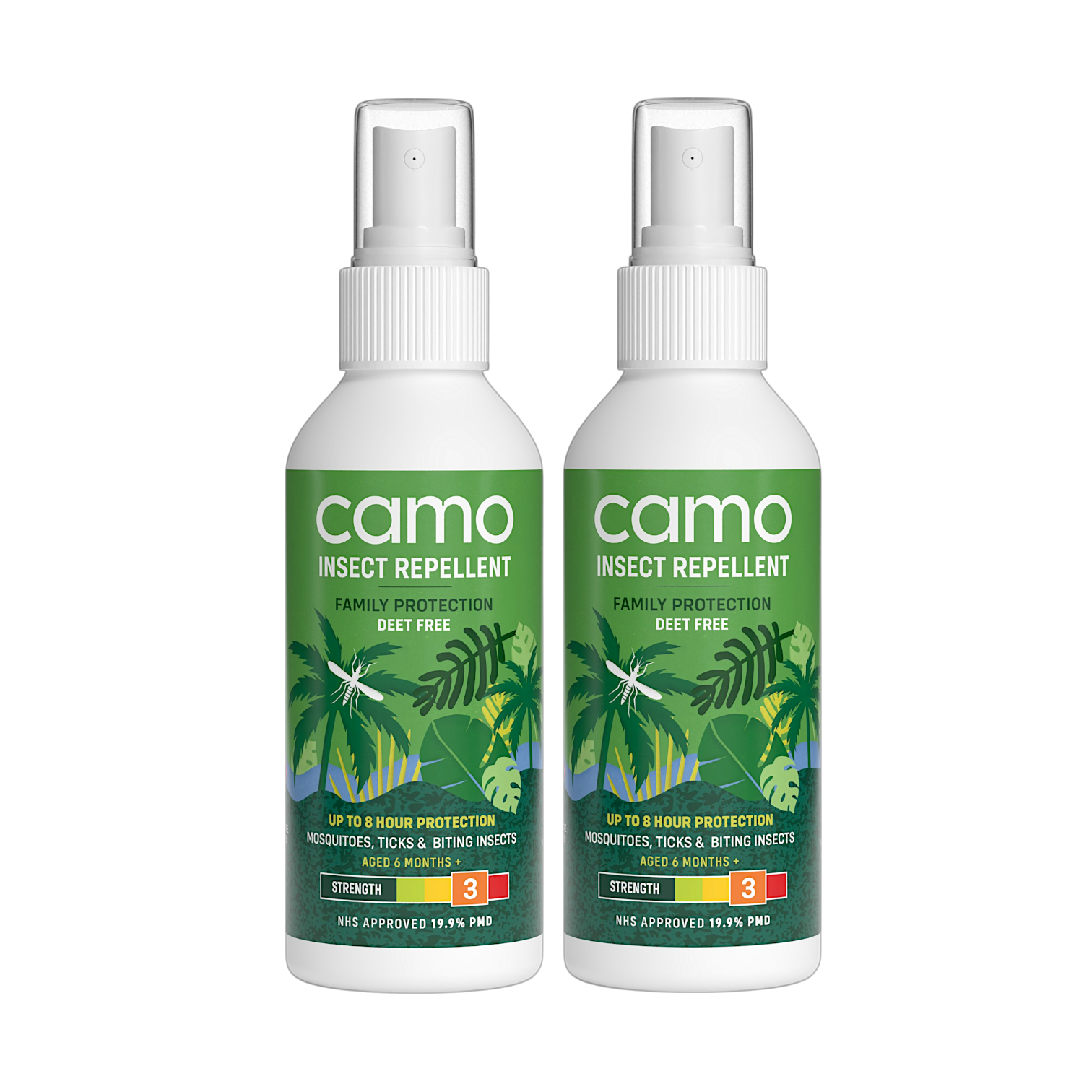 Camo®, Family Protection Insect Repellent Emulsion Spray, Soft on Skin, Moisturising, DEET-Free Protection for holidays, home & garden. - 100ml x 2