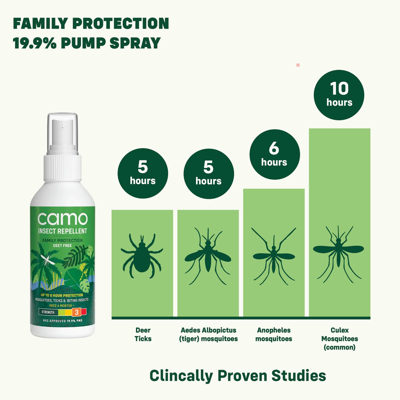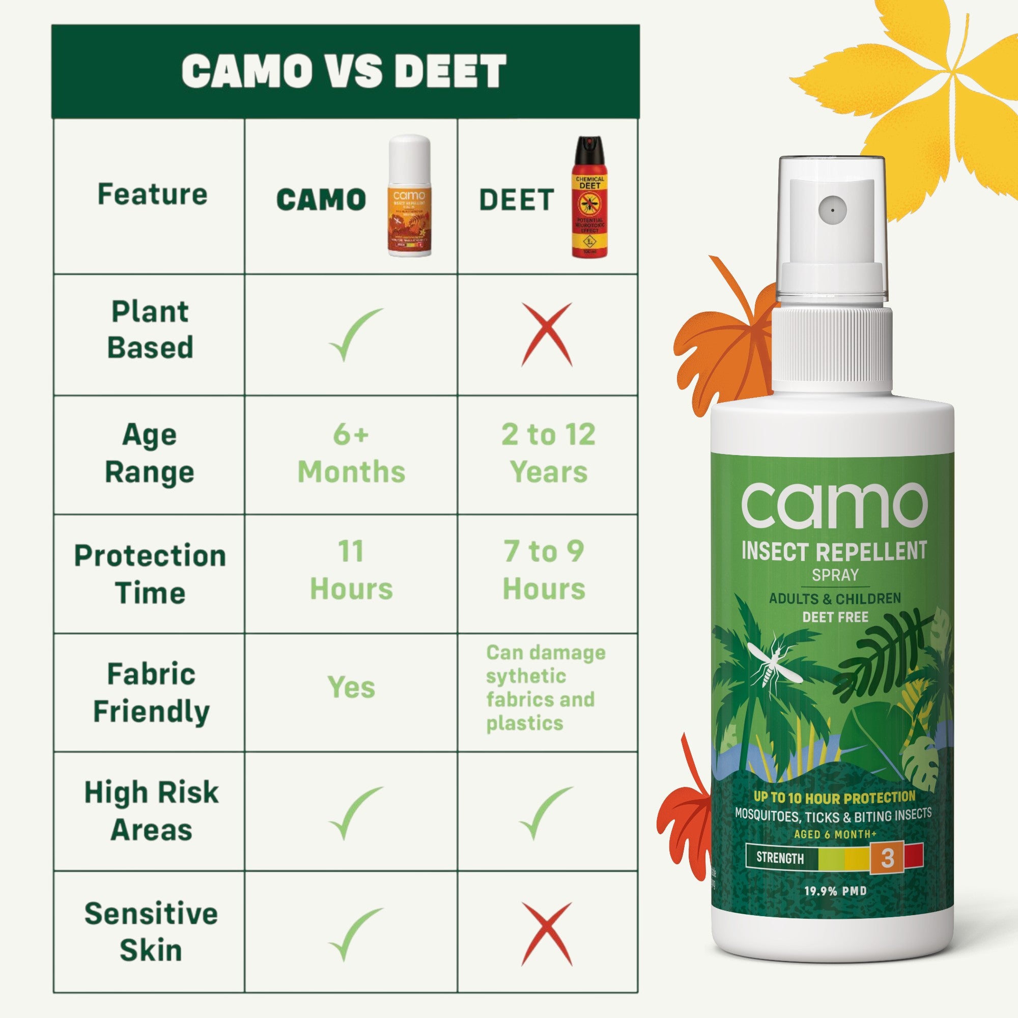 Camo®, Family Protection Insect Repellent Emulsion Spray, Soft on Skin, Moisturising, DEET-Free Protection for holidays, home & garden. - 100ml